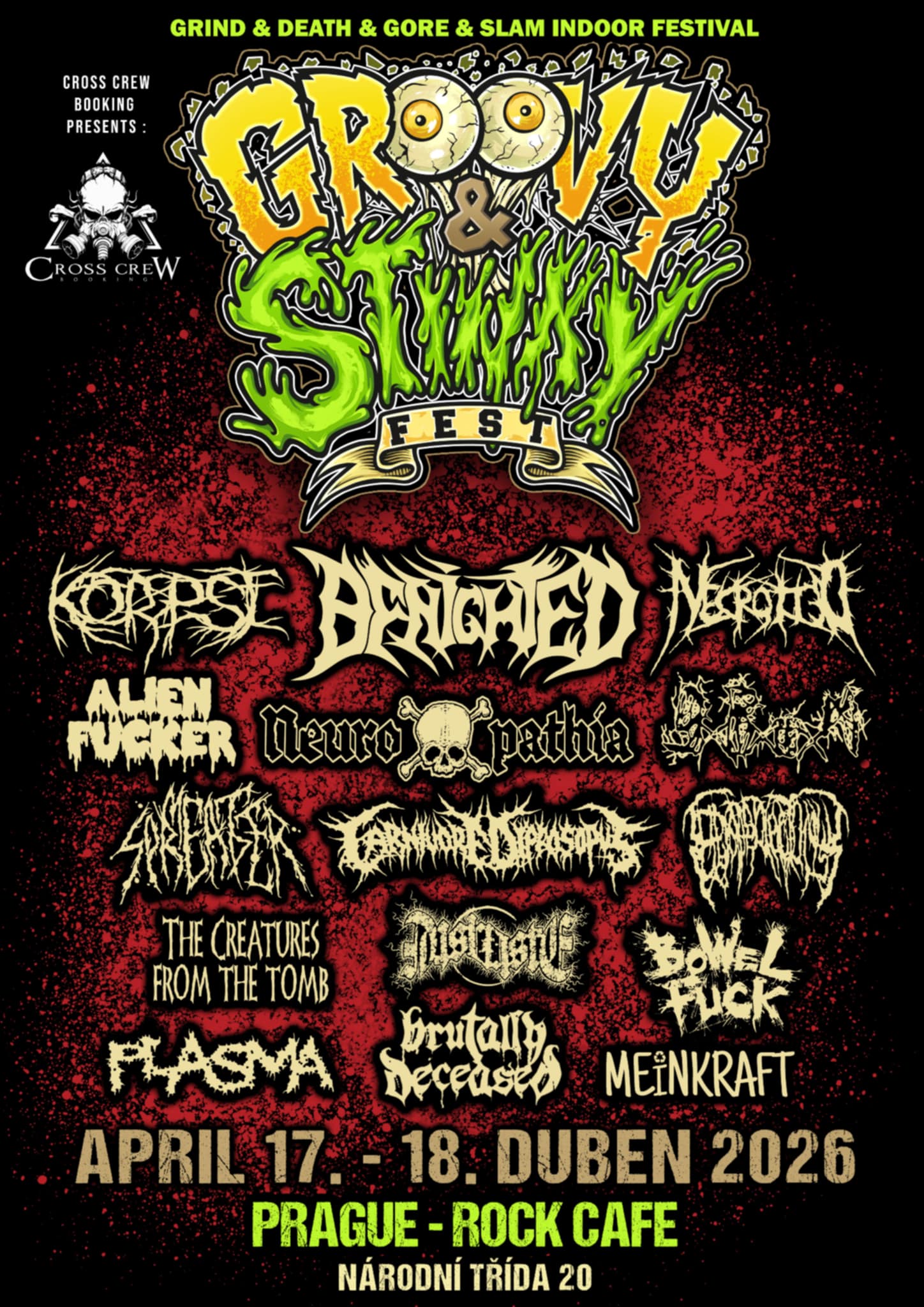 Šestý ročník indoor festivalu Groovy & Stinky v pražském Rock Café klubu. 15 kapel, dva dny, jedna stage.