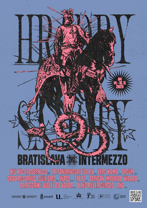 Veľmi vzácne vystúpenie pripravuje African Imperial Wizard – málo koncertujúci projekt z Angoly, ktorý spája kmeňové rytmy, industriálne beaty a vojenskú energiu. Každé vystúpenie je unikátna udalosť, zvukový rituál a politická výpoveď, ktorá diváka pohltí intenzitou a autenticitou. Frett (PL), vydávajúci u legendárneho labelu Ant-Zen, kombinuje industriálne rytmy, IDM a temnú elektroniku do dramatických, pohybujúcich sa kompozícií, ktoré sú zmyselné aj energetické zároveň. Noise duo Paregorik & Violet de Valor (CZ)prepája krutú zvukovú agresiu s performanciou burlesknej tanečnice, čím vzniká vizuálne a zvukovo hypnotická rituálna skúsenosť. Program dopĺňa Blind Ruler Cursed Land (CZ) s ezoterickými, orientálne ladenými zvukovými krajinami a príbehmi o samote, smrti a duchovnej transformácii, vykonávanými tradičnými nástrojmi.