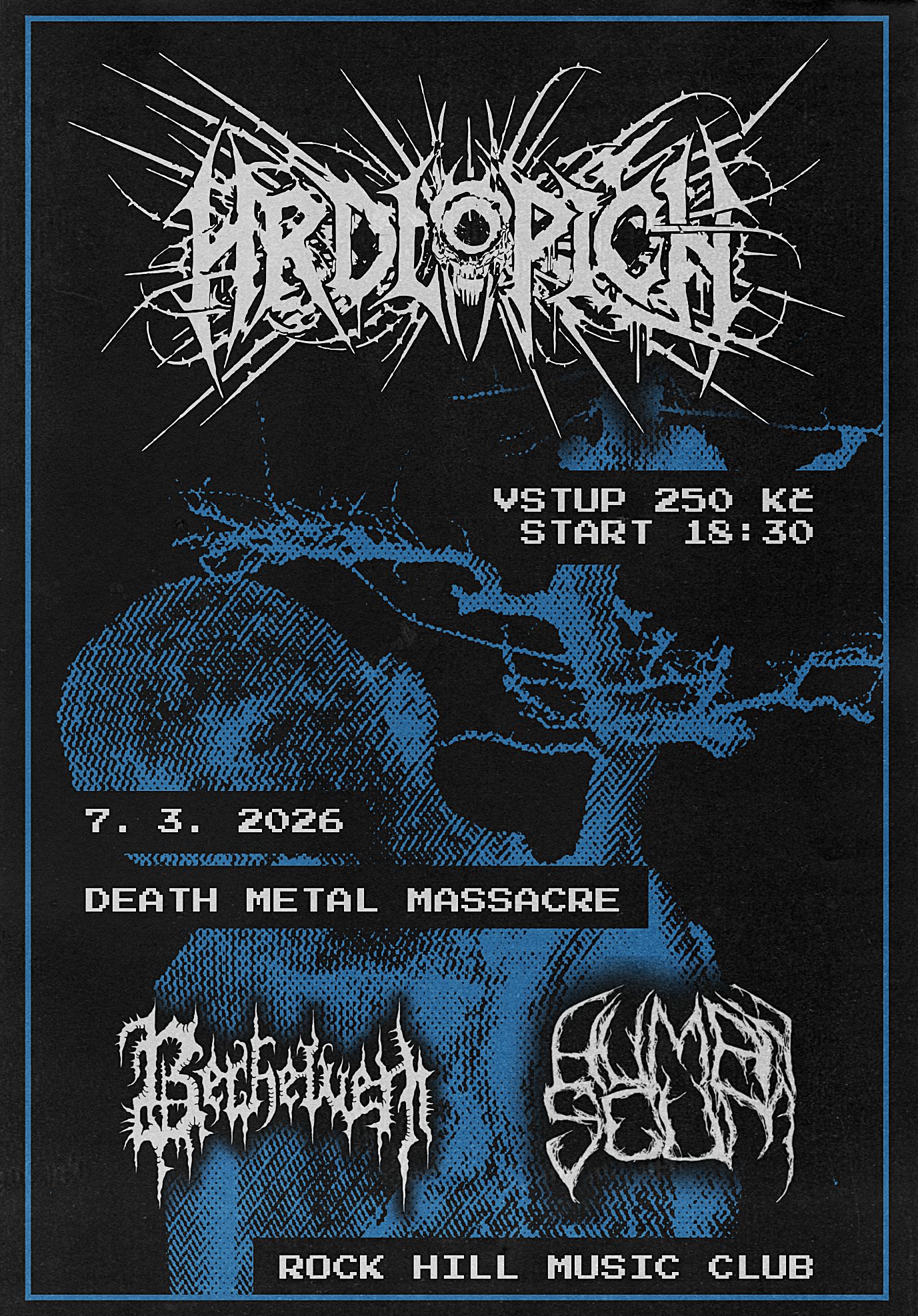 Dantez: Death metaly z tuzemských luhů rozeznějí pokleslé prostory na ostravském hulváckém kopci. Jen z názvů kapel jde snad dobře vyčíst, o co půjde. Hniloba, dekadence a nihilismus si potyká s podladěnými tóny, které respektují pravidla starých škol.