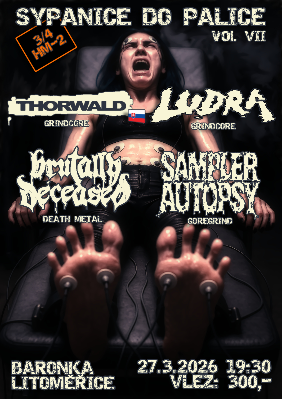 Sicky: Sledgedown - groove / death metal, Neurotic Machinery - technical death metal, Cutterred Flesh - brutal death metal, Awrizis - hybrid metal, Perferia - death metal / grind core. Tuzemská scéna se předvede na jedné z tradičních Vopičích taškařic. Za dvě kilča mega porce nářezu, no neber to.