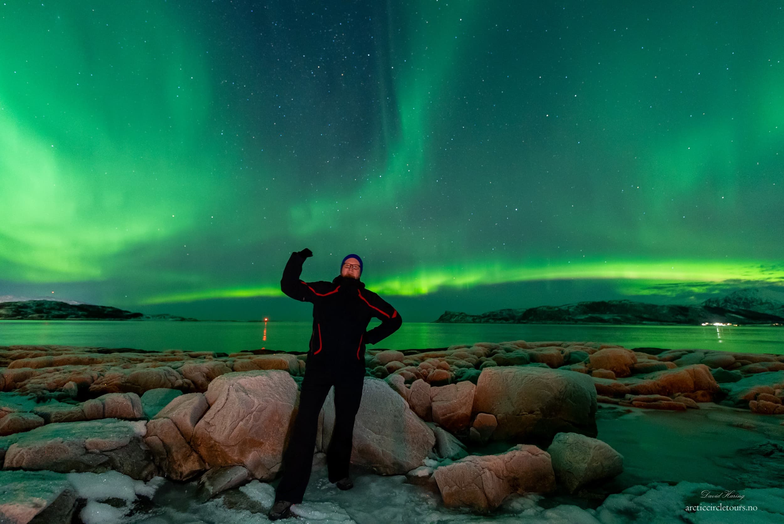 Když jsme byli cca v půlce cesty, stále v místech, kde je téměř nulové osvětlení, koukám z okna a říkám, že to na nebi opět začíná slušně tancovat. A díky tomu, v jak malé skupině, malém vozu a hlavně s jak nadšeným řidičem jedeme, David rychle zastavuje u cesty, vytahuje foťák a začíná vše natáčet. Během pár vteřin se na nebi ze všech stran rozjede show, kterou jsme za celou noc neviděli. Najednou nevíme, kam se máme koukat.