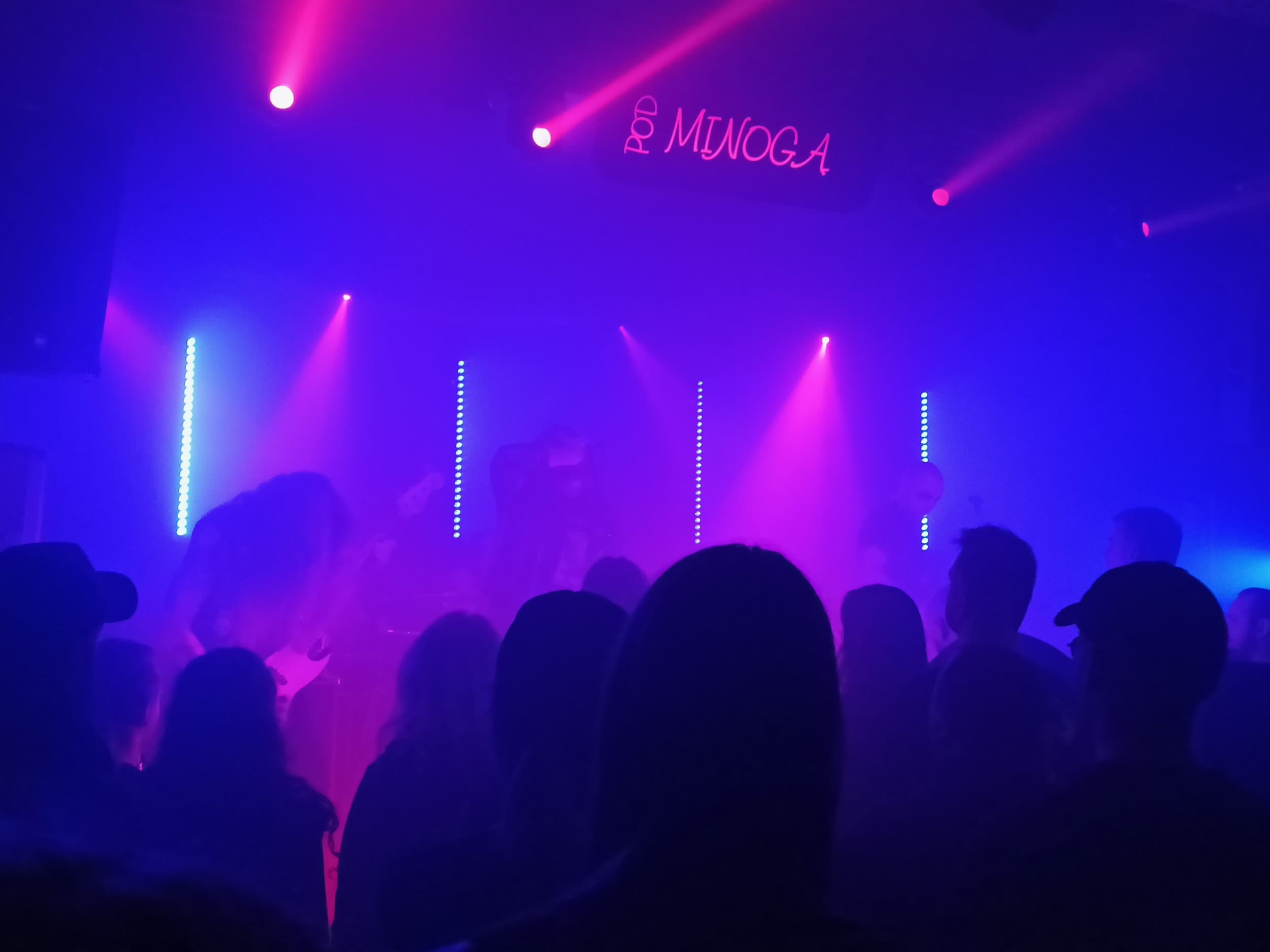Koncert se konal v poměrně malém klubu Pod Minogą, který se nachází doslova pár kroků od úplného centra města. Vlastně to je spíše taková pivnice, která má v prvním patře také menší sál s pódiem, kam se může vejít třeba 200 lidí. Model trochu jako 007 na Strahově, kde přímo před kapelou stojí pár lidí a vzadu je ještě několik stolů s židlemi jen s tím rozdílem, že zde je zadní sezení ještě vyvýšené pár schody.