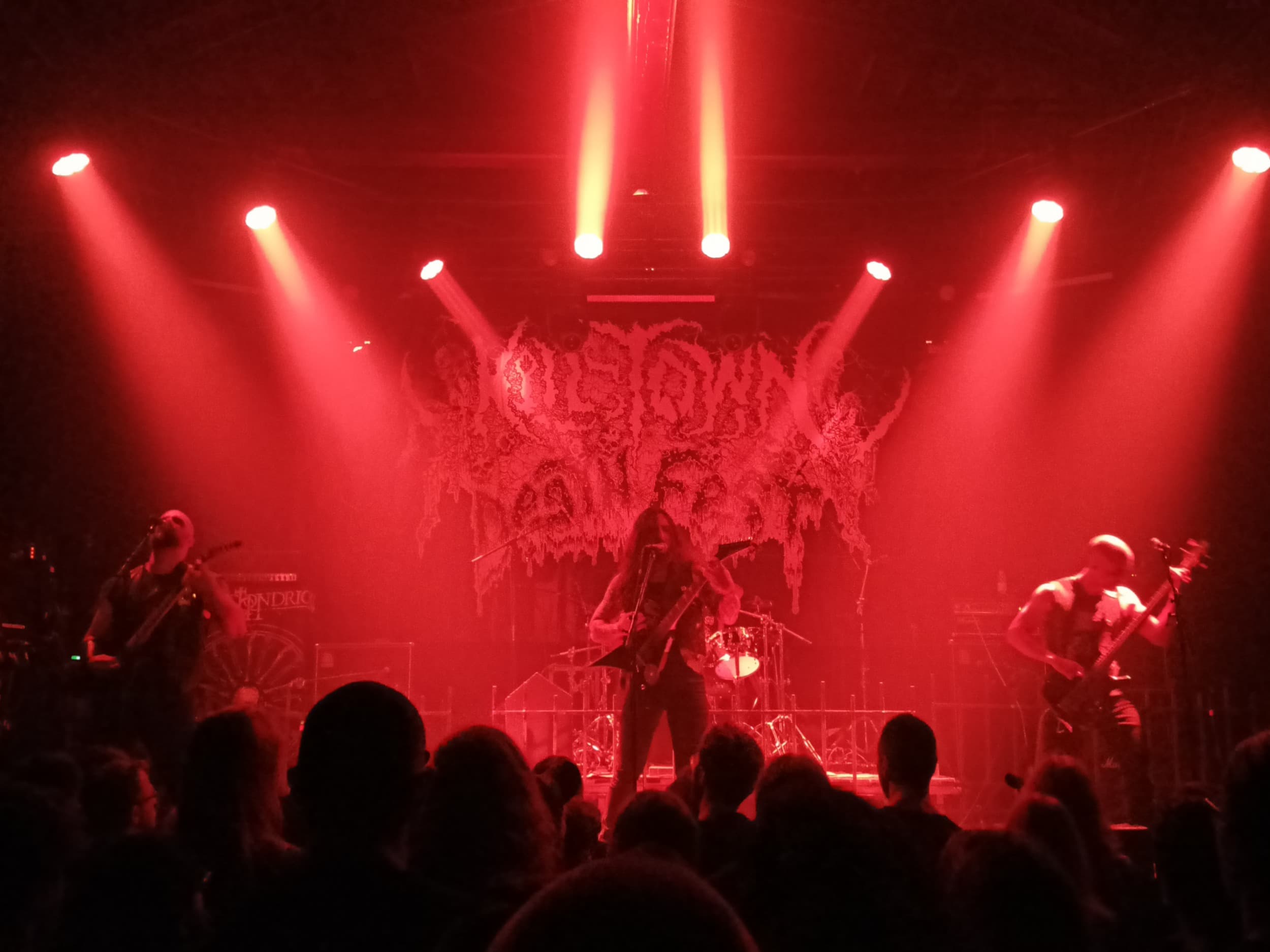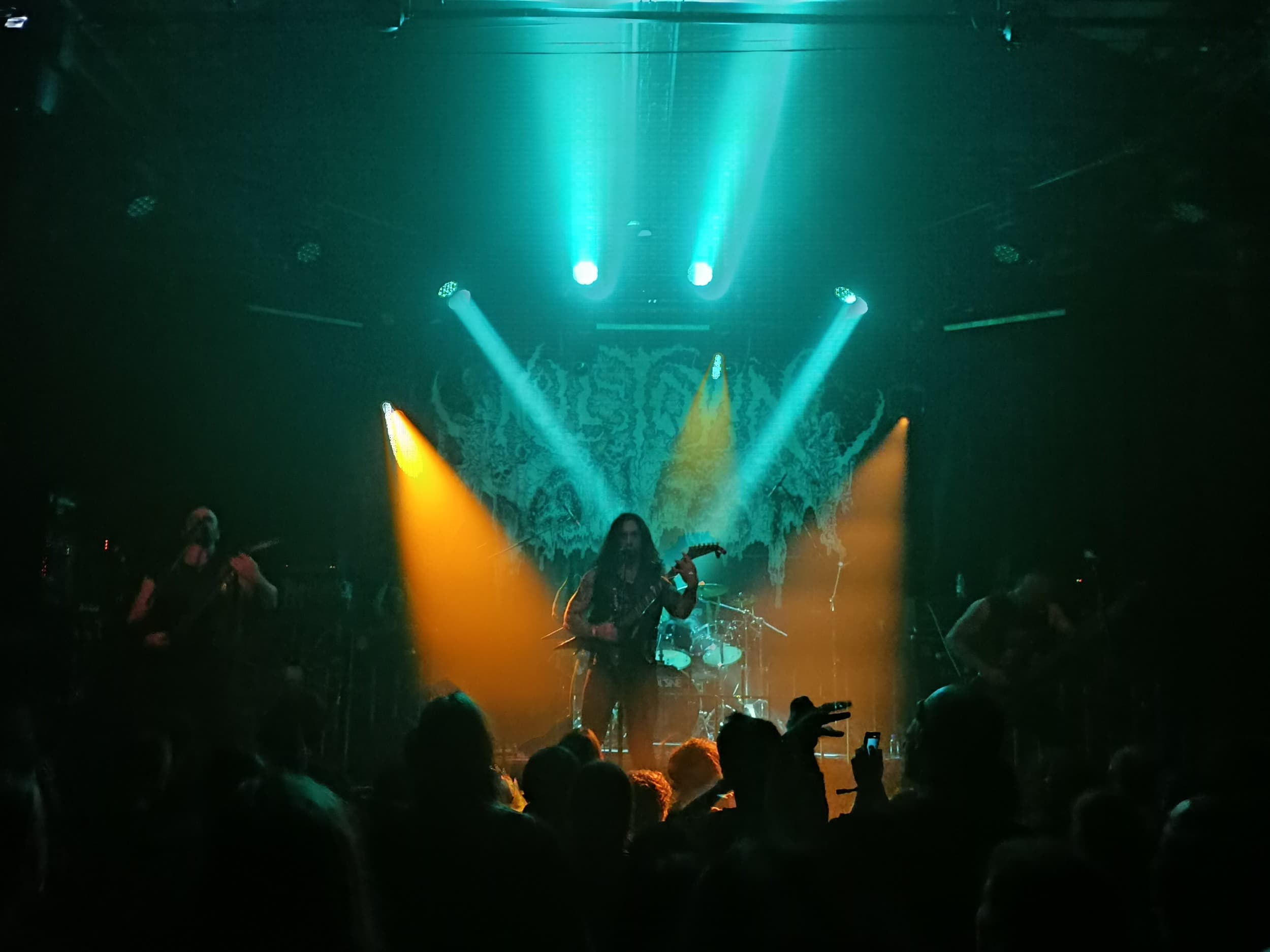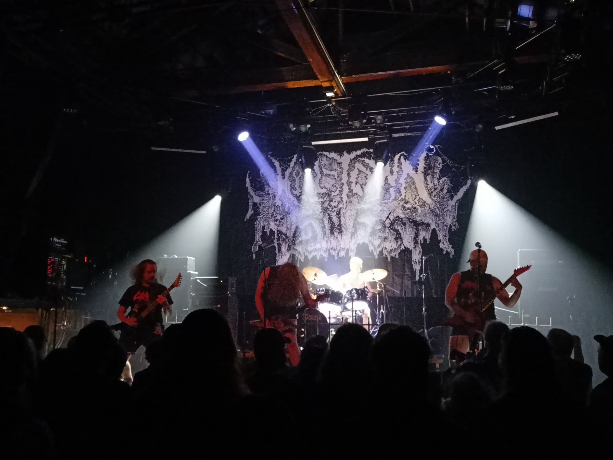 Tady ovšem jela drtička na kosti nonstop. Riffy makaly, sóla táhla, bicí nakládaly. Bestialita koncertu Mitochondrion vládla, ale tady se fakt nebavíme o nějakém tupém war metalu. Přístup Kanaďanů je na žánr mega progresivní a technický. Na svůj původ a inspiraci bohy války, případně nadvládou válečného kultu nezapomínají. Nejvíce to jde slyšet hlavně ve vokálech. Oba kytaristé se přeřvávali prakticky nonstop a občas se k nim připojil i baskytarista Sebastian. Hlavní vokál ale patřil Shawnovi, který vzýval smrt svými mocnými vdechy. Nick jej naopak téměř nonstop doplňoval spíše řevem. Skoro nikdy však unisono, prakticky vždy individuálními vokálními i textovými linkami.