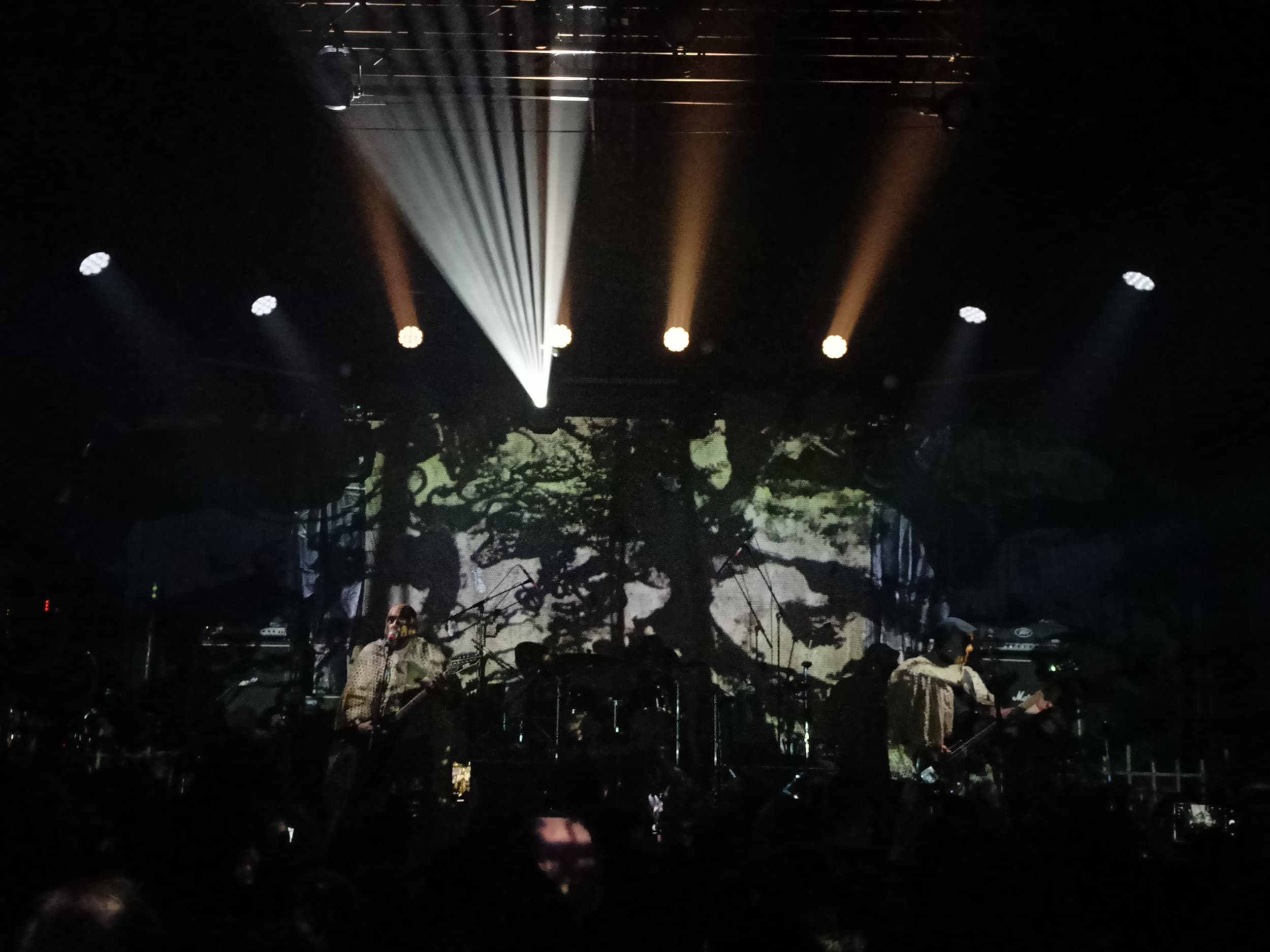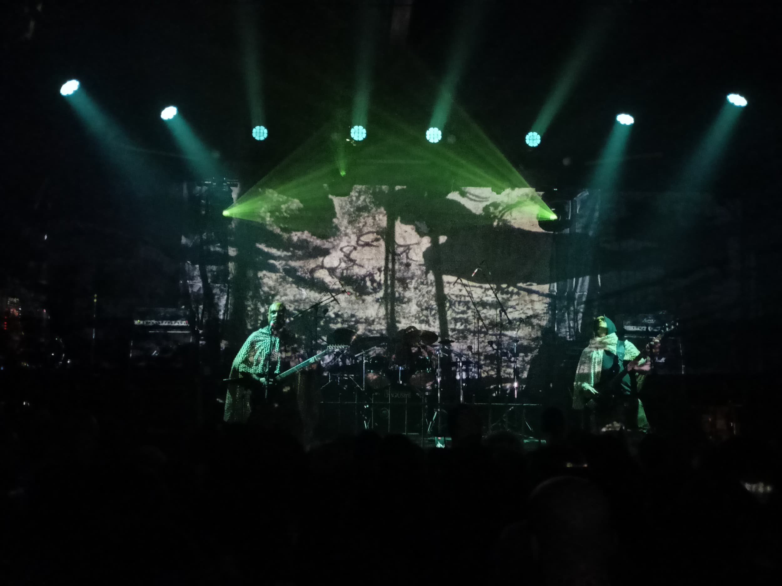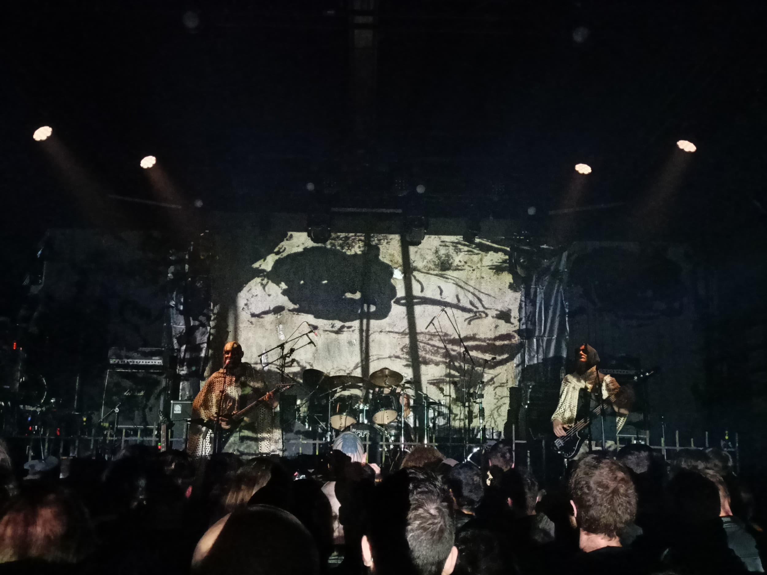 Je to už sice nějaký pátek, kdy své lebky a další kosti vyměnili za černobílé přehozy, které vypadají jako nějaké závěsy po babičce a k tomu připojili černobílou projekci. A byť se přiznám, že sám úplně nechápu, co přesně má tohle symbolizovat, vlastně to působilo velmi efektně. Projekci měla kapela za sebou dostatečně obrovskou a místy díky svým ohozům s ní téměř splývala. Zbytek světel byl poté dostatečně minimalistický, aby černobílý vizuál nějak přehnaně nenarušoval.