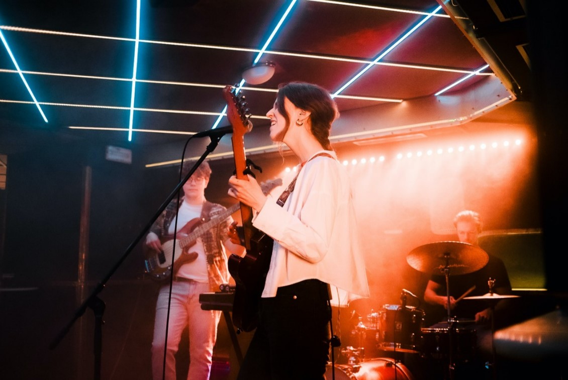 Malou scénu naplní kouř a dobrá nálada. Vytažená baskytara přede a prostor se vlní v jejím rytmu, zatímco Marjari v taktu překvapivě rázných bicích vypráví krátké příběhy ze života – poeticky, autenticky – a kytarou je s láskou posílá k nám. Publikum se viditelně uvolňuje a já si připadám jako předloni v létě, kdy jsem ji viděl předskakovat Island Mind.