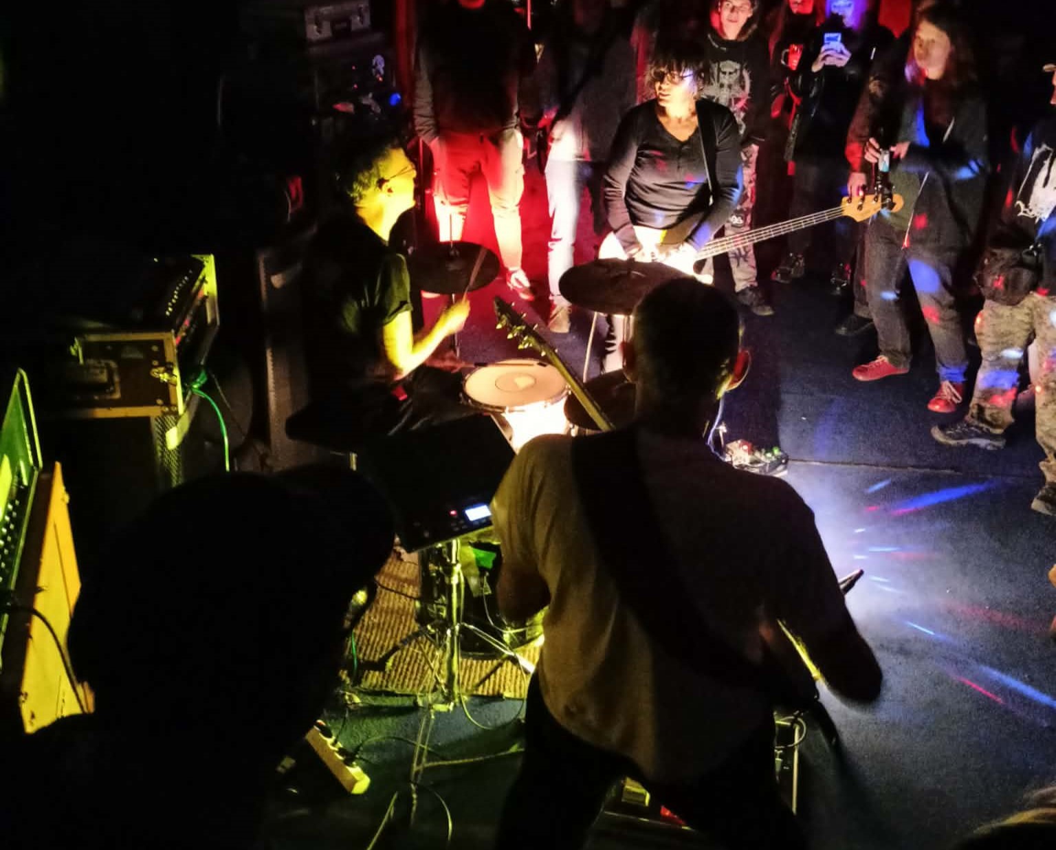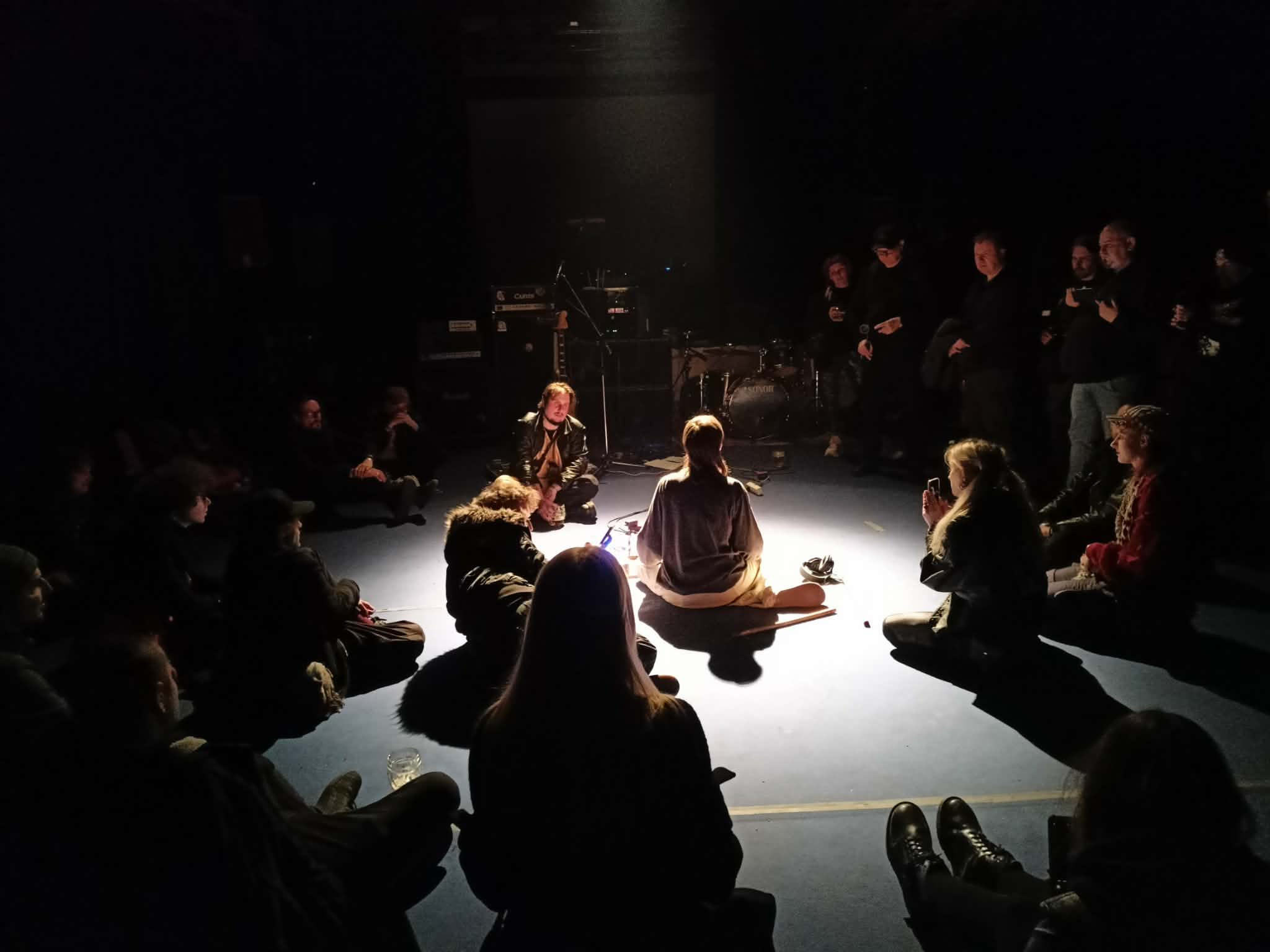 Když ale přicházím do klubu na třetí Kashu, překvapuje mě, že se rozhodně nejedná o klasické koncertní provedení, kdy všichni hrají na vyvýšeném pódiu. Většina gearu byla rozložená normálně mezi diváky a téměř všichni interpreti, až na pár výjimek, hráli uprostřed lidí.