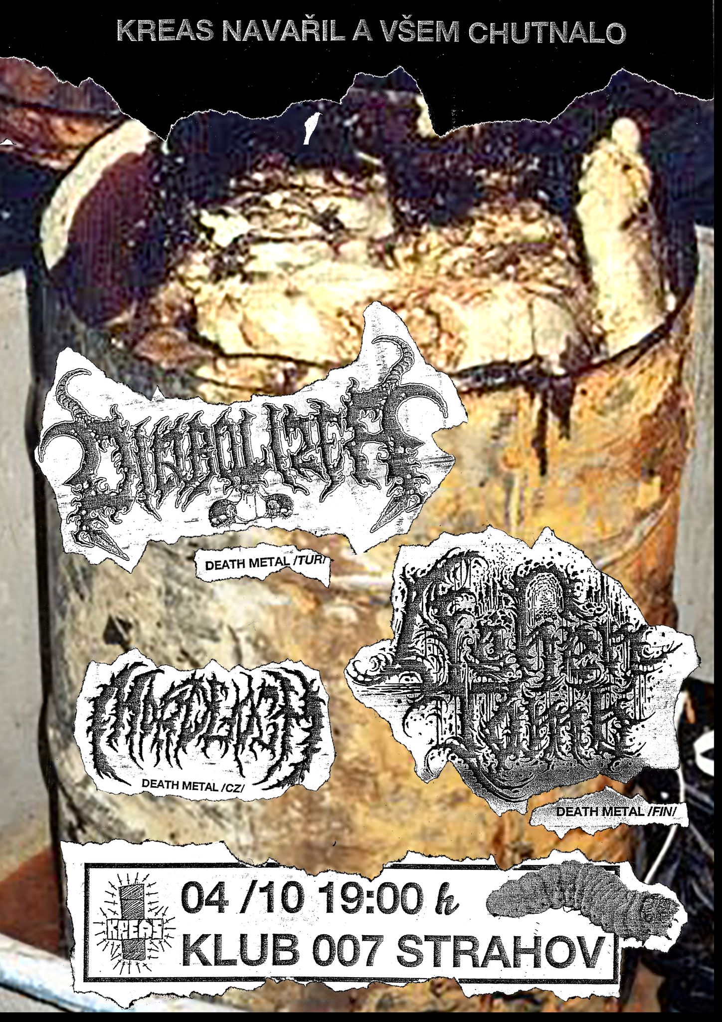 mIZZY: Až na lokální Mordloch, kteří si nedávno střihli solidní gig před Left to Die, z tohodle gigu nic neznám. Ale když Kreas dělaj na kopci death metal, je jasné, že to nebude špatná akce.