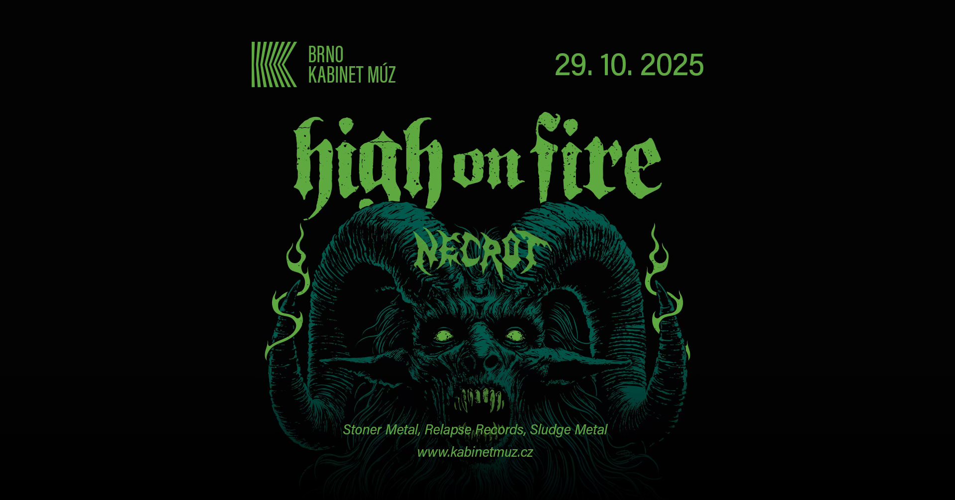 HIGH ON FIRE + NECROT (Kabinet Múz, Brno) – FB event