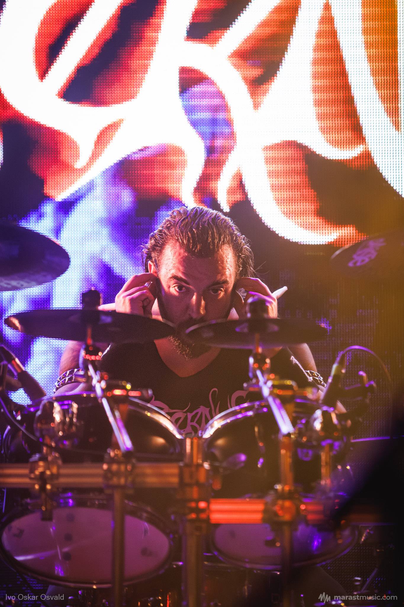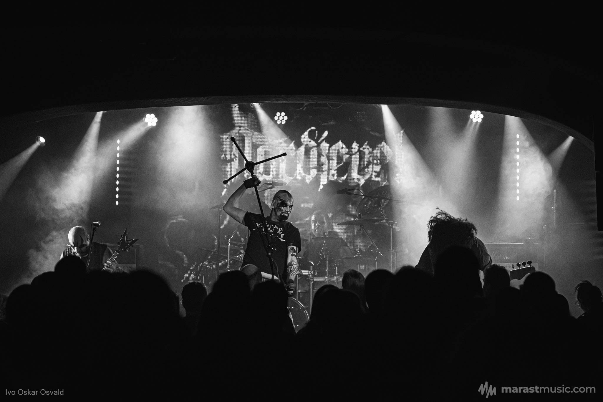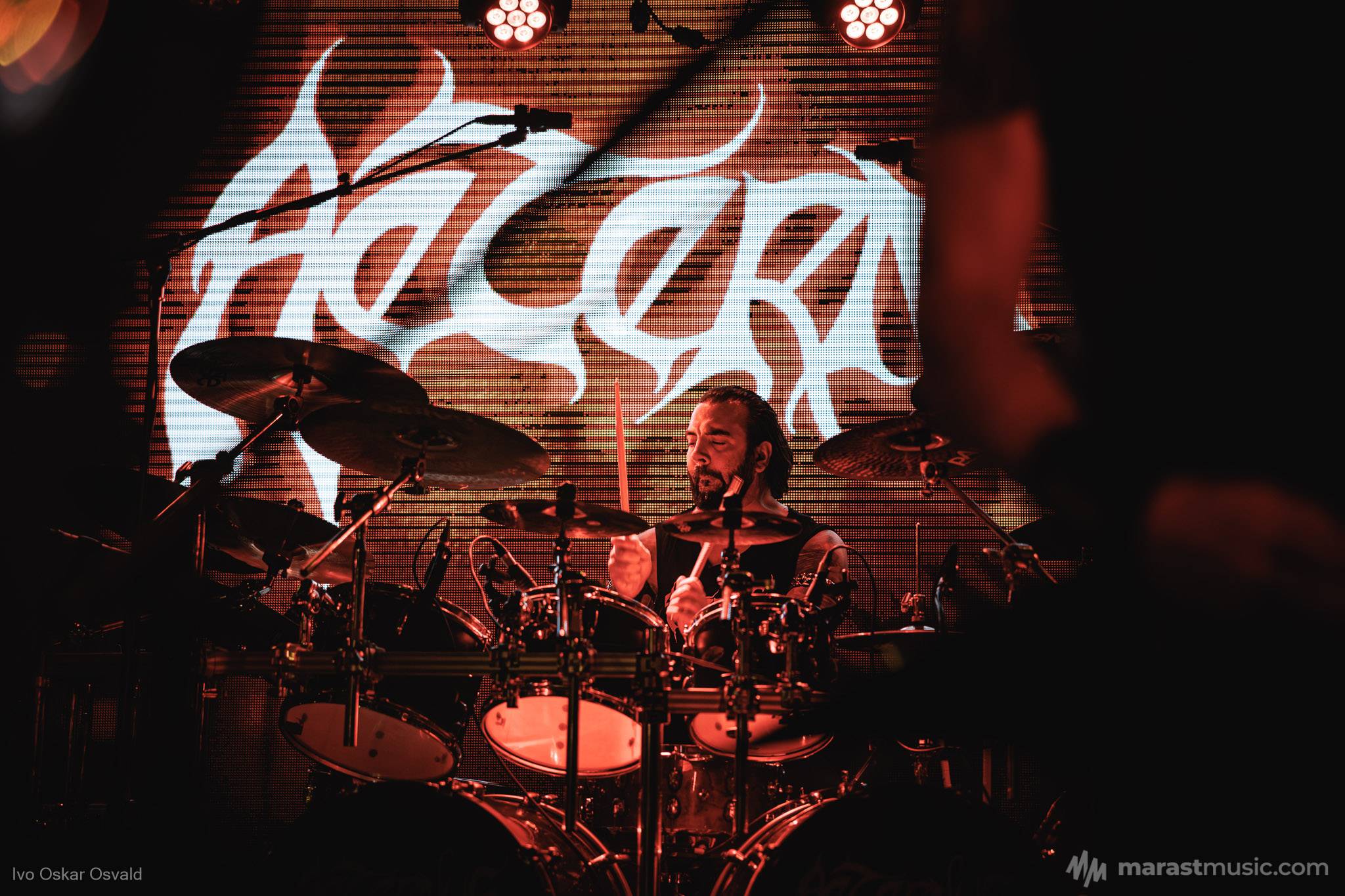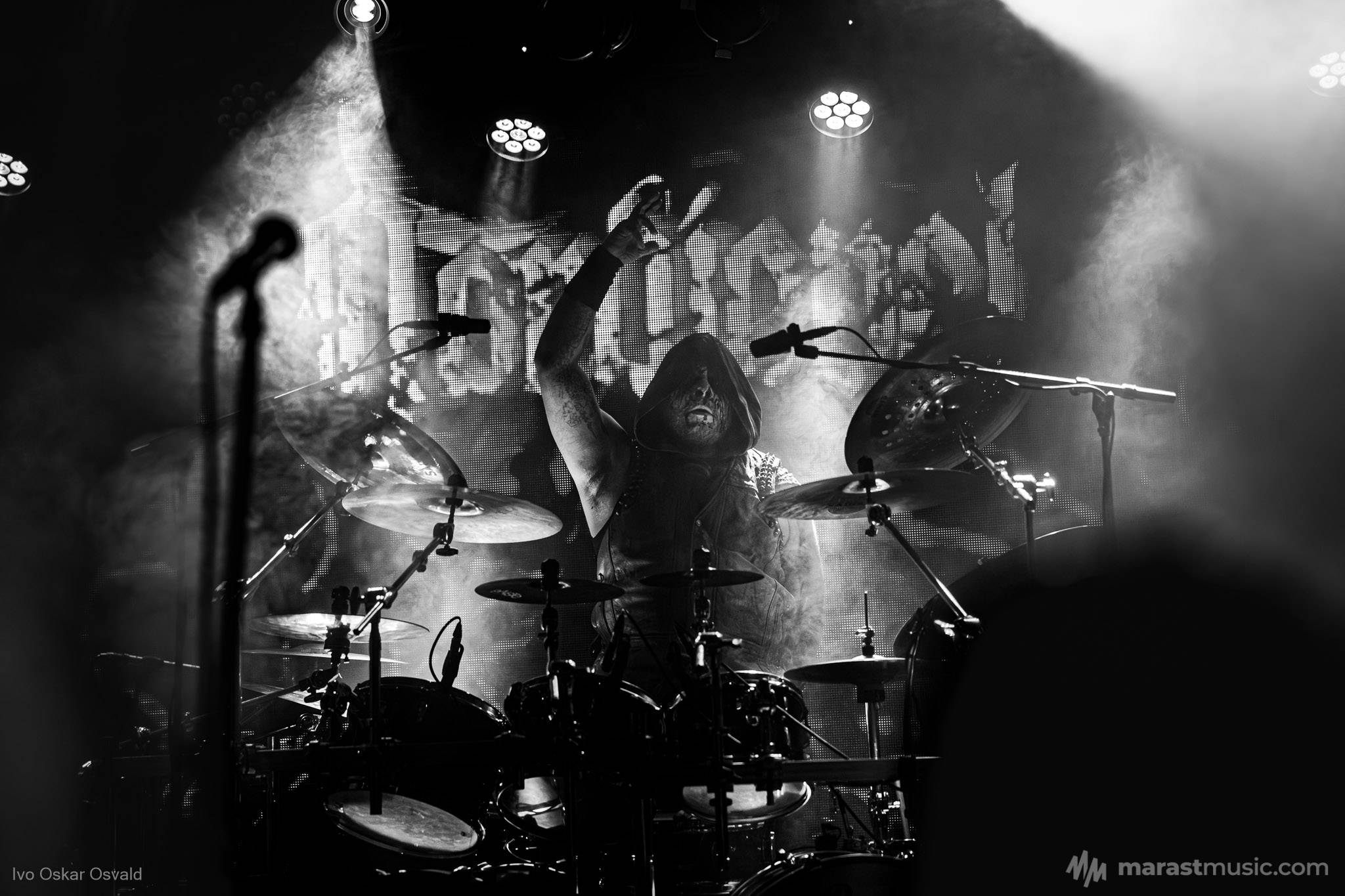 odsypal riadne, oproti albu dost výrazný crashe/chiny, škoda trigger cvakčvachtu, ale vepředu i bas a šlo to, zvuk skvěle čitelnej, mohl trošku víc tlačit, ale ok, Destructhor přísný tremolo i thrash/death drbačky Morbid Angel/Thorns/DhG/Myrkskog/Zyklon i temno zpomalení v Gnavhòl, místy trochu chyběla druhá kytara, v Of Rats and Men rytmická z playbacku + v ní D řval mocnějc než zpěvák, asi zapomněl začátek jednoho sóla a pár drobnejch rozjezdů, ale většina zahraná skvěle, 4 z poslední desky dobrý, ty starší až moc vlezlý melodie, ale fajn