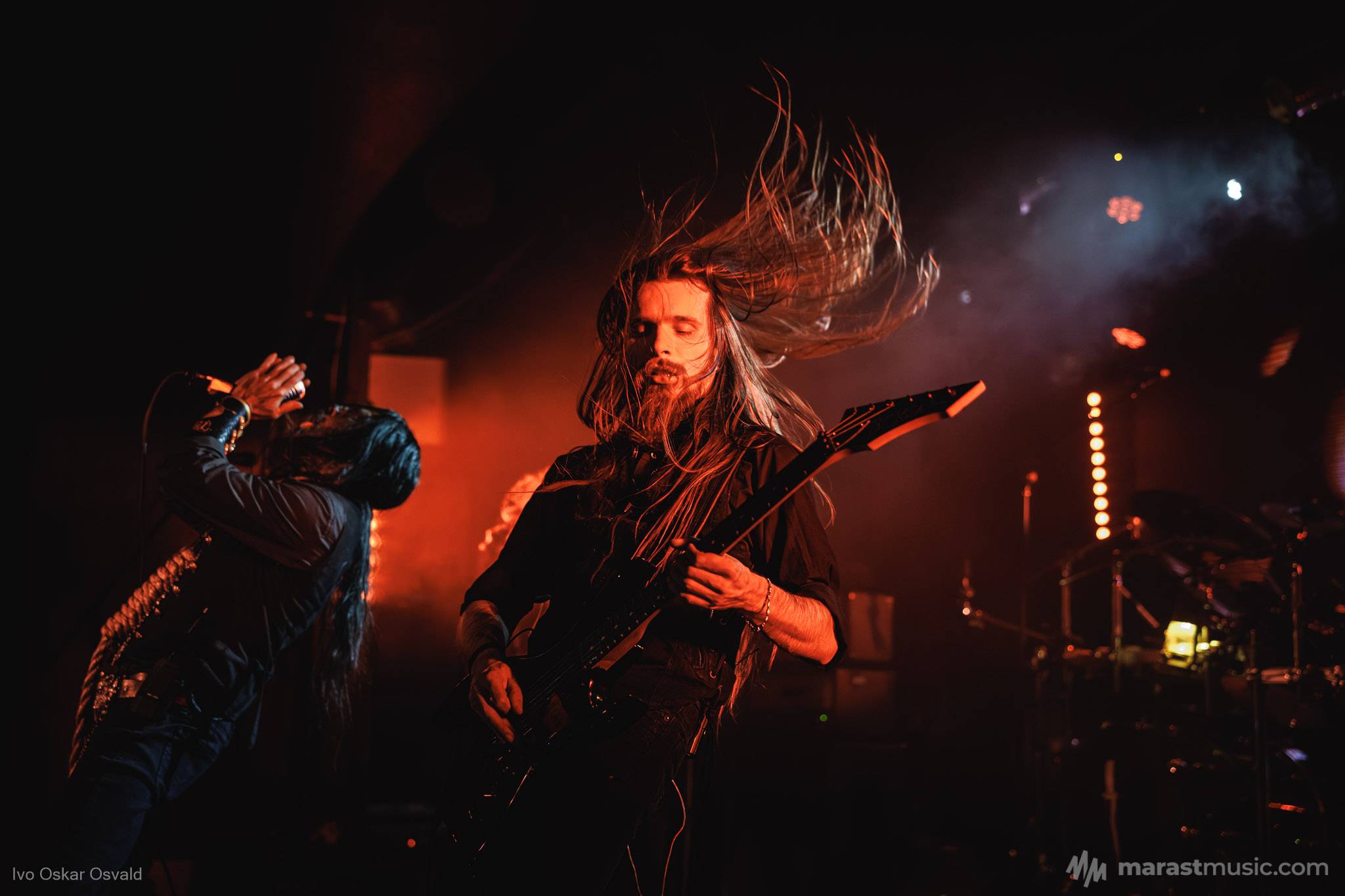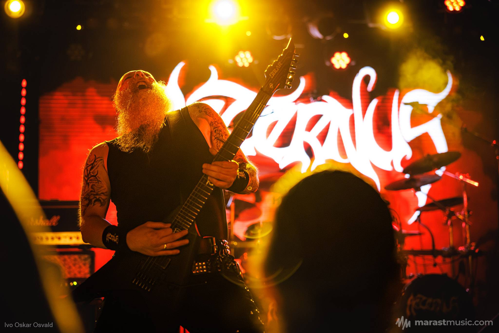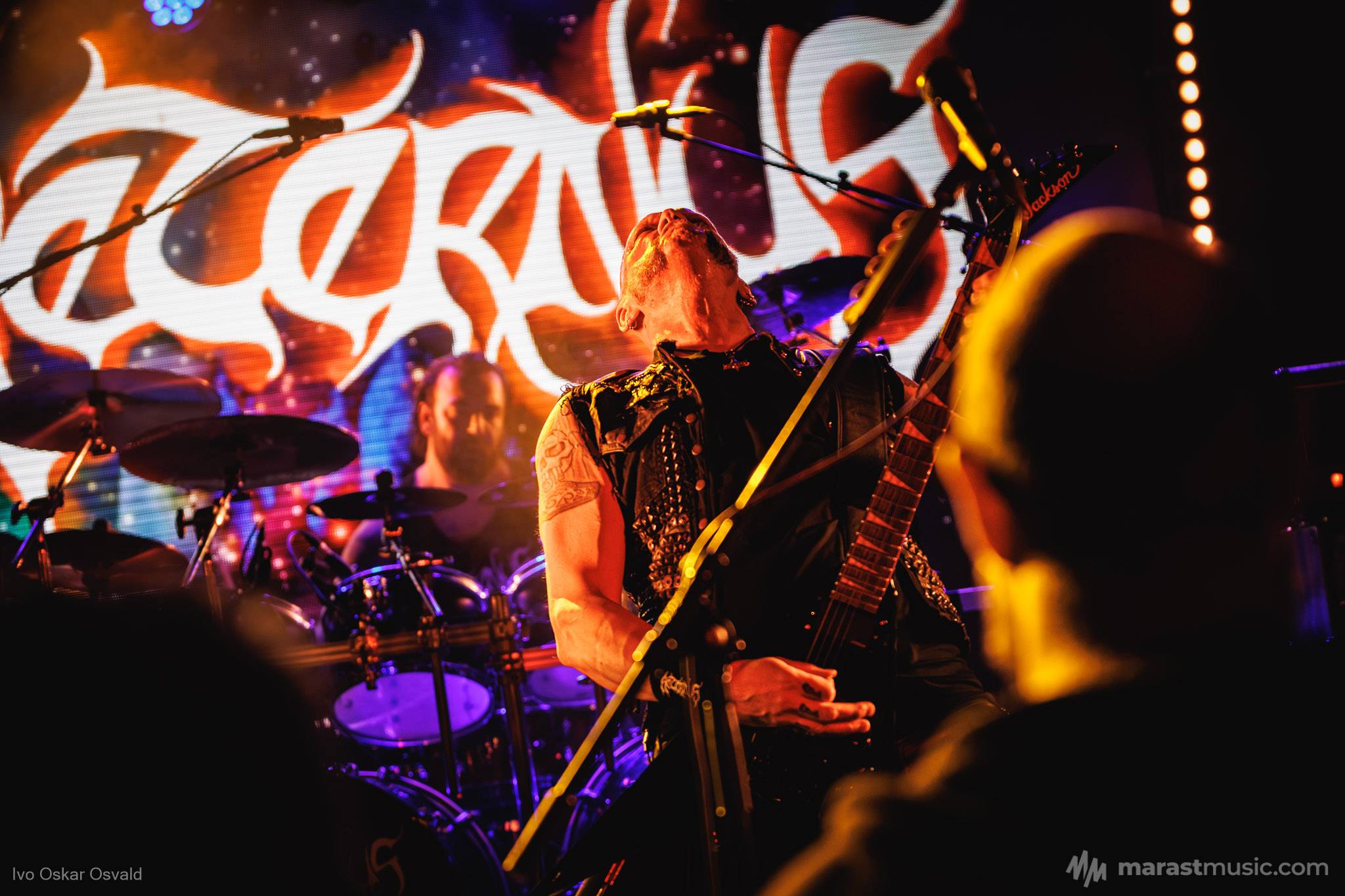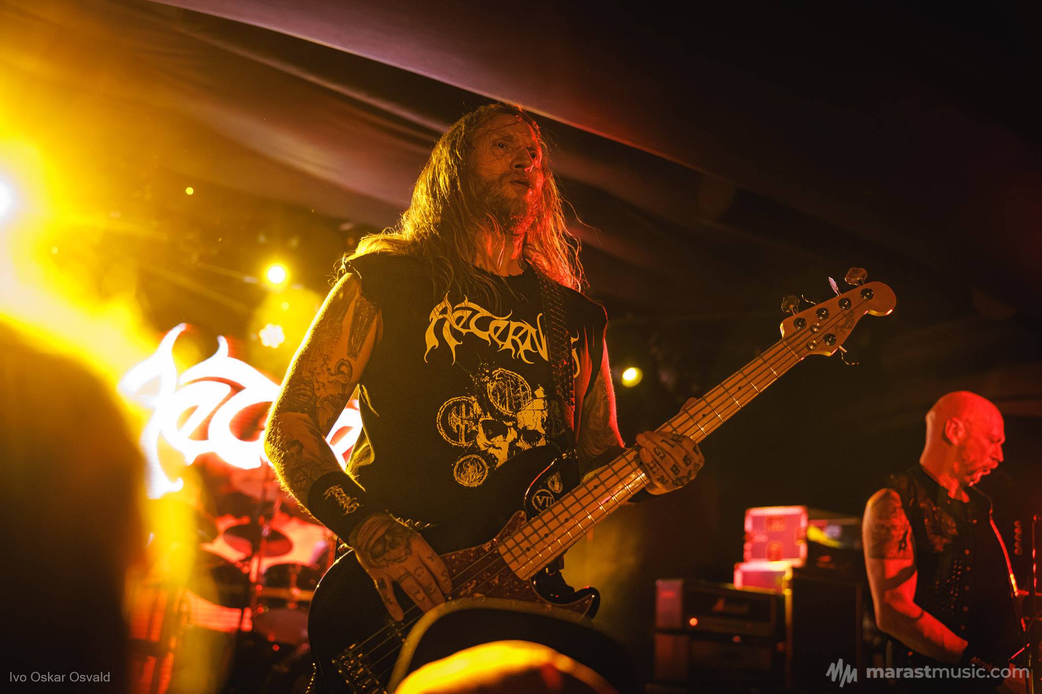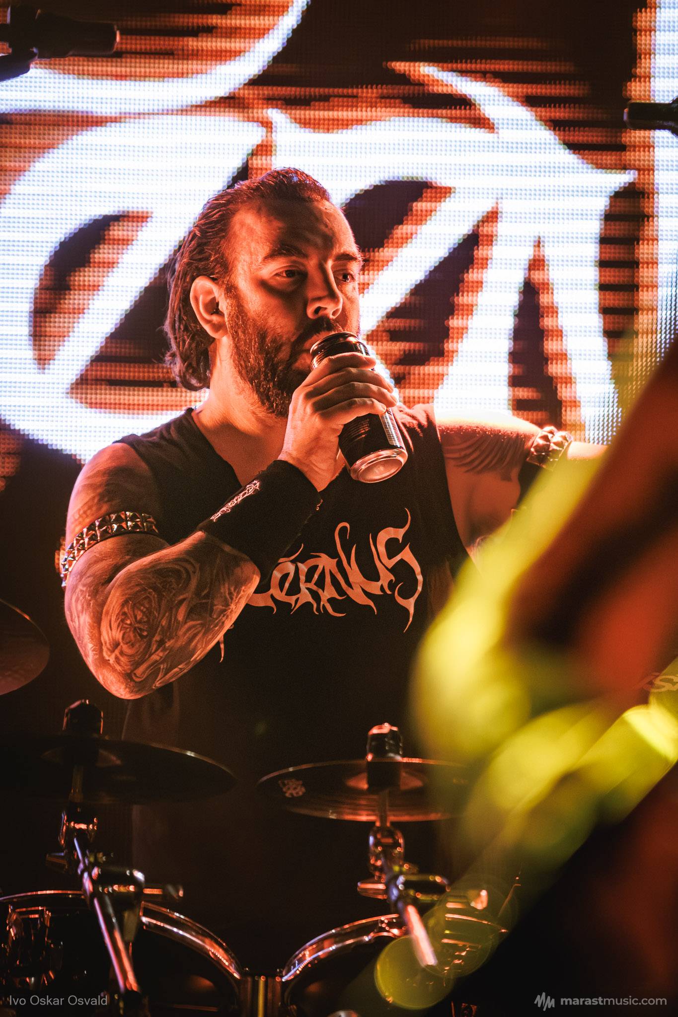 odsypal riadne, oproti albu dost výrazný crashe/chiny, škoda trigger cvakčvachtu, ale vepředu i bas a šlo to, zvuk skvěle čitelnej, mohl trošku víc tlačit, ale ok, Destructhor přísný tremolo i thrash/death drbačky Morbid Angel/Thorns/DhG/Myrkskog/Zyklon i temno zpomalení v Gnavhòl, místy trochu chyběla druhá kytara, v Of Rats and Men rytmická z playbacku + v ní D řval mocnějc než zpěvák, asi zapomněl začátek jednoho sóla a pár drobnejch rozjezdů, ale většina zahraná skvěle, 4 z poslední desky dobrý, ty starší až moc vlezlý melodie, ale fajn