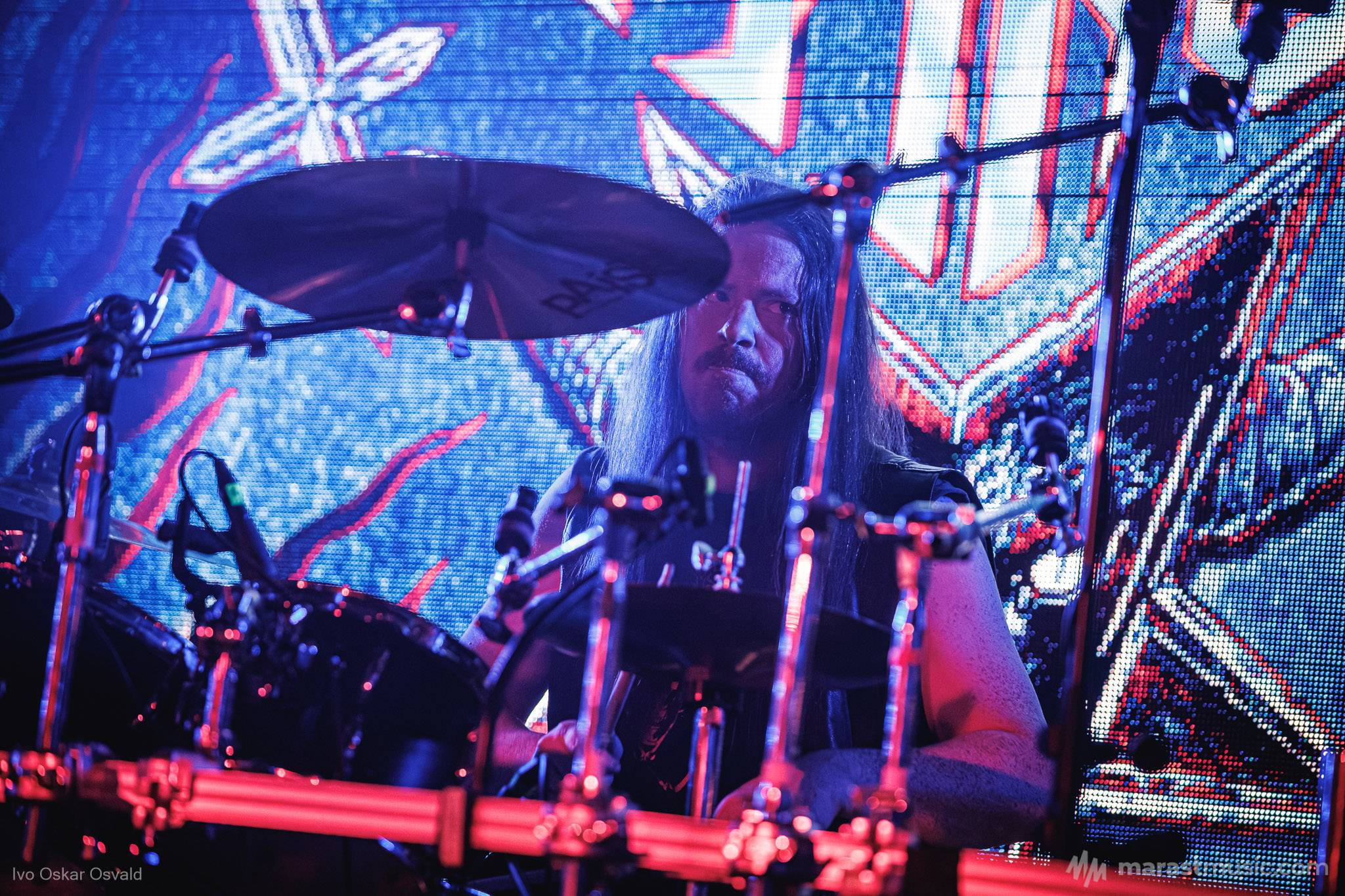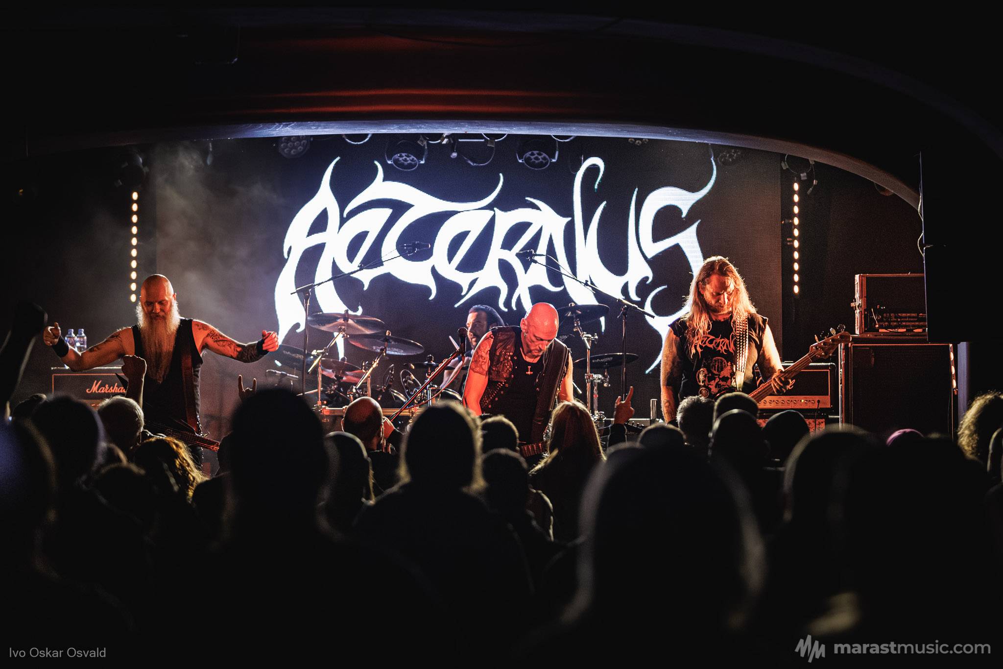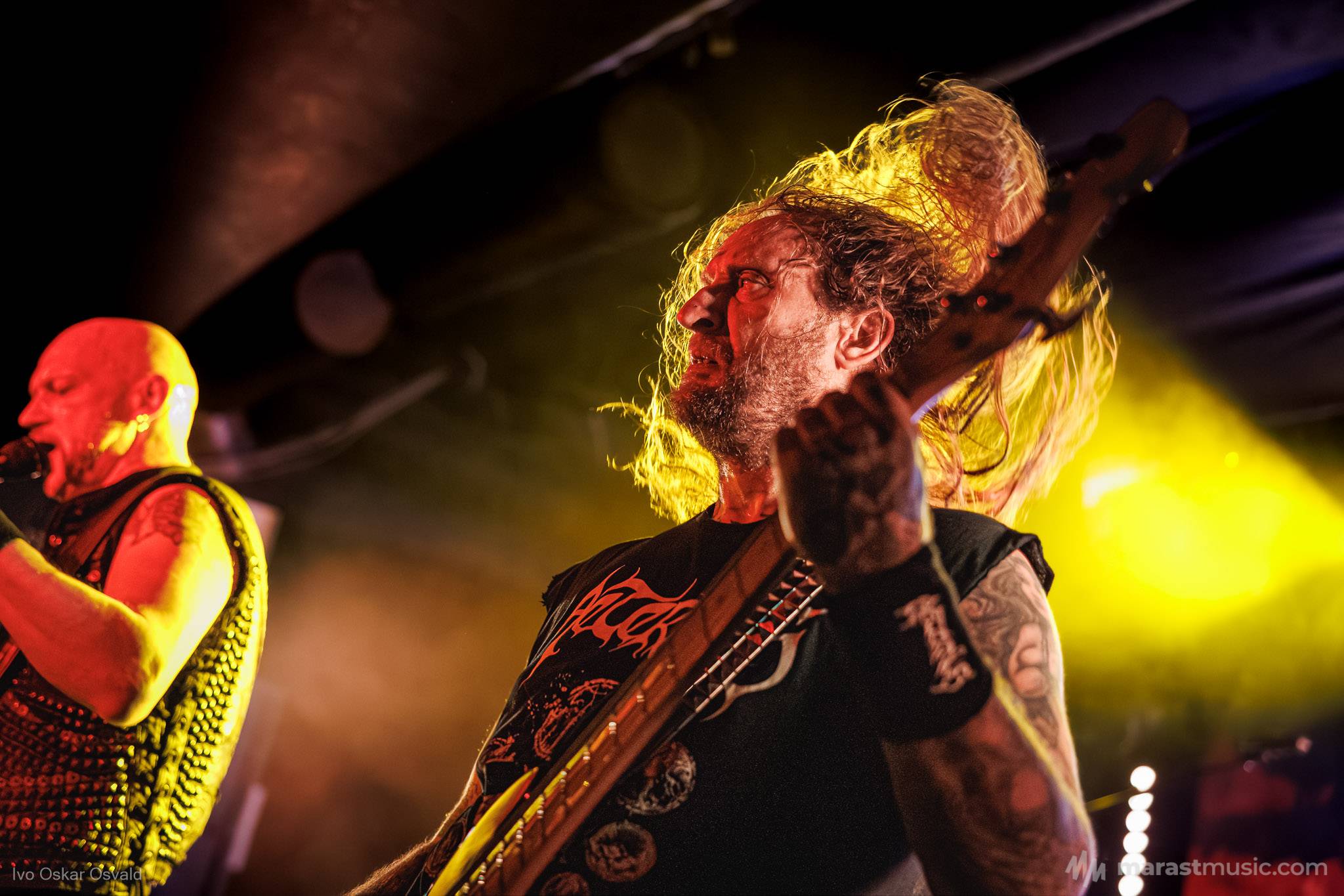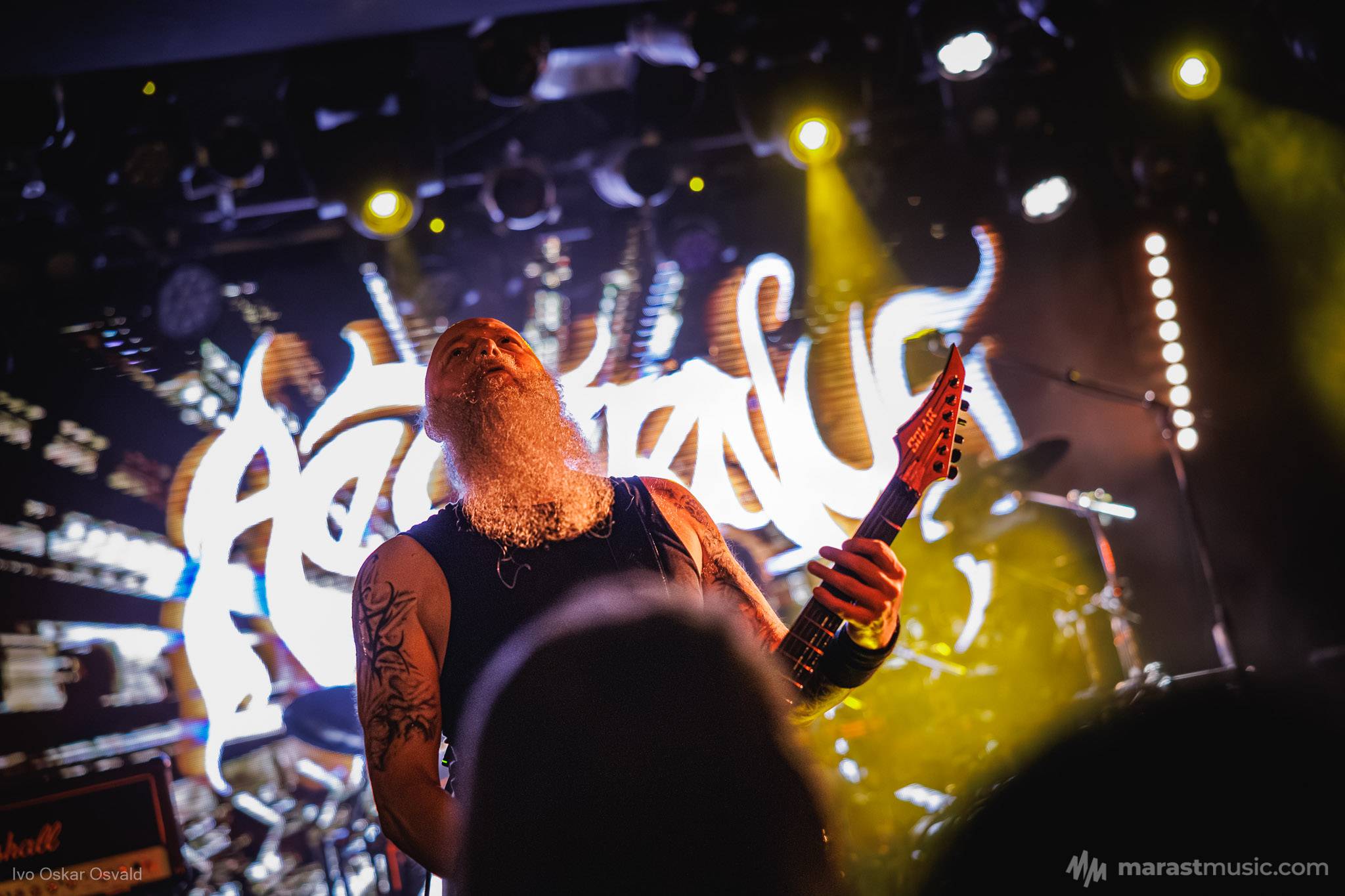 odsypal riadne, oproti albu dost výrazný crashe/chiny, škoda trigger cvakčvachtu, ale vepředu i bas a šlo to, zvuk skvěle čitelnej, mohl trošku víc tlačit, ale ok, Destructhor přísný tremolo i thrash/death drbačky Morbid Angel/Thorns/DhG/Myrkskog/Zyklon i temno zpomalení v Gnavhòl, místy trochu chyběla druhá kytara, v Of Rats and Men rytmická z playbacku + v ní D řval mocnějc než zpěvák, asi zapomněl začátek jednoho sóla a pár drobnejch rozjezdů, ale většina zahraná skvěle, 4 z poslední desky dobrý, ty starší až moc vlezlý melodie, ale fajn