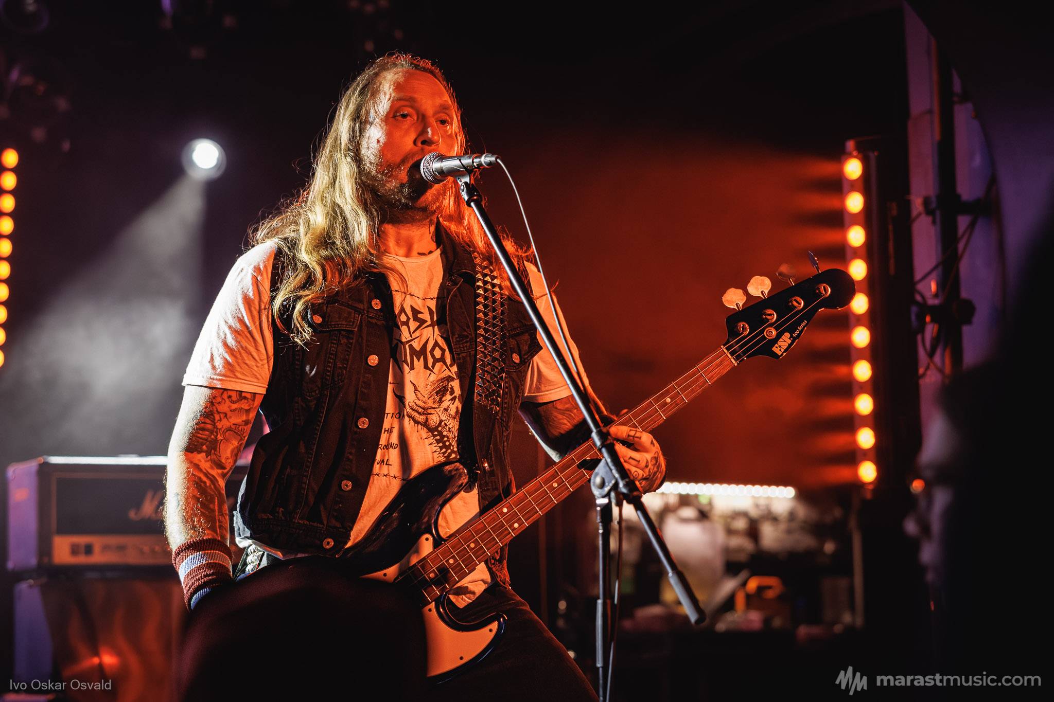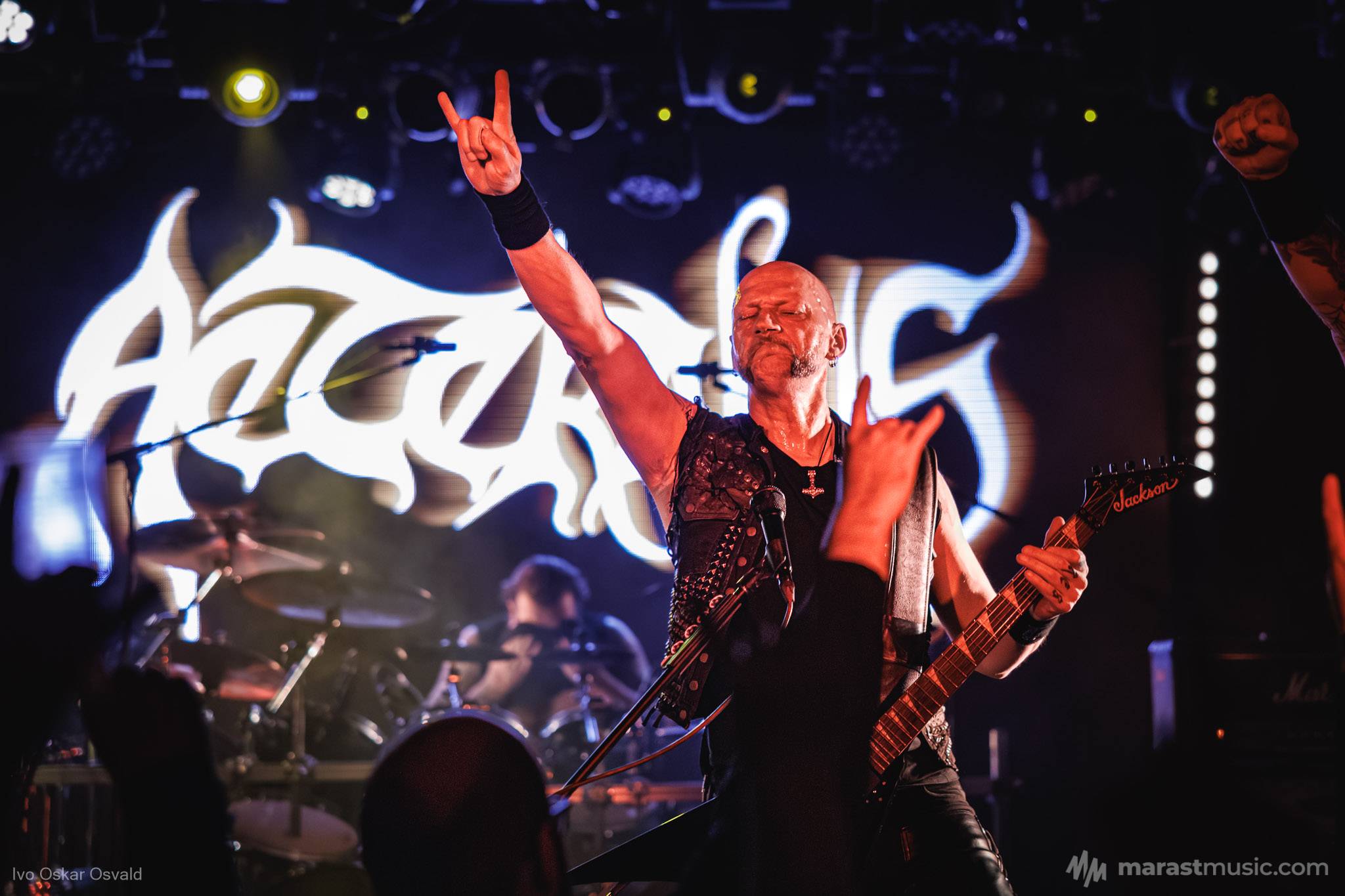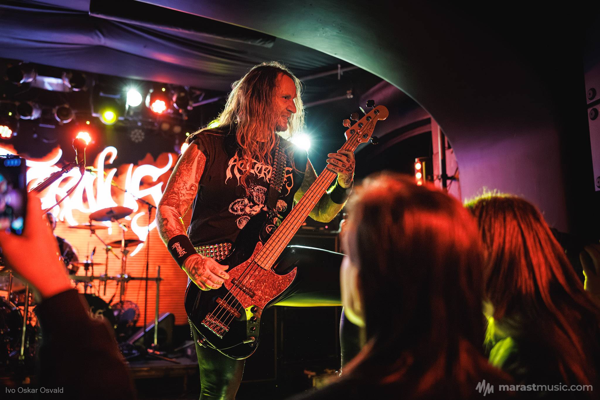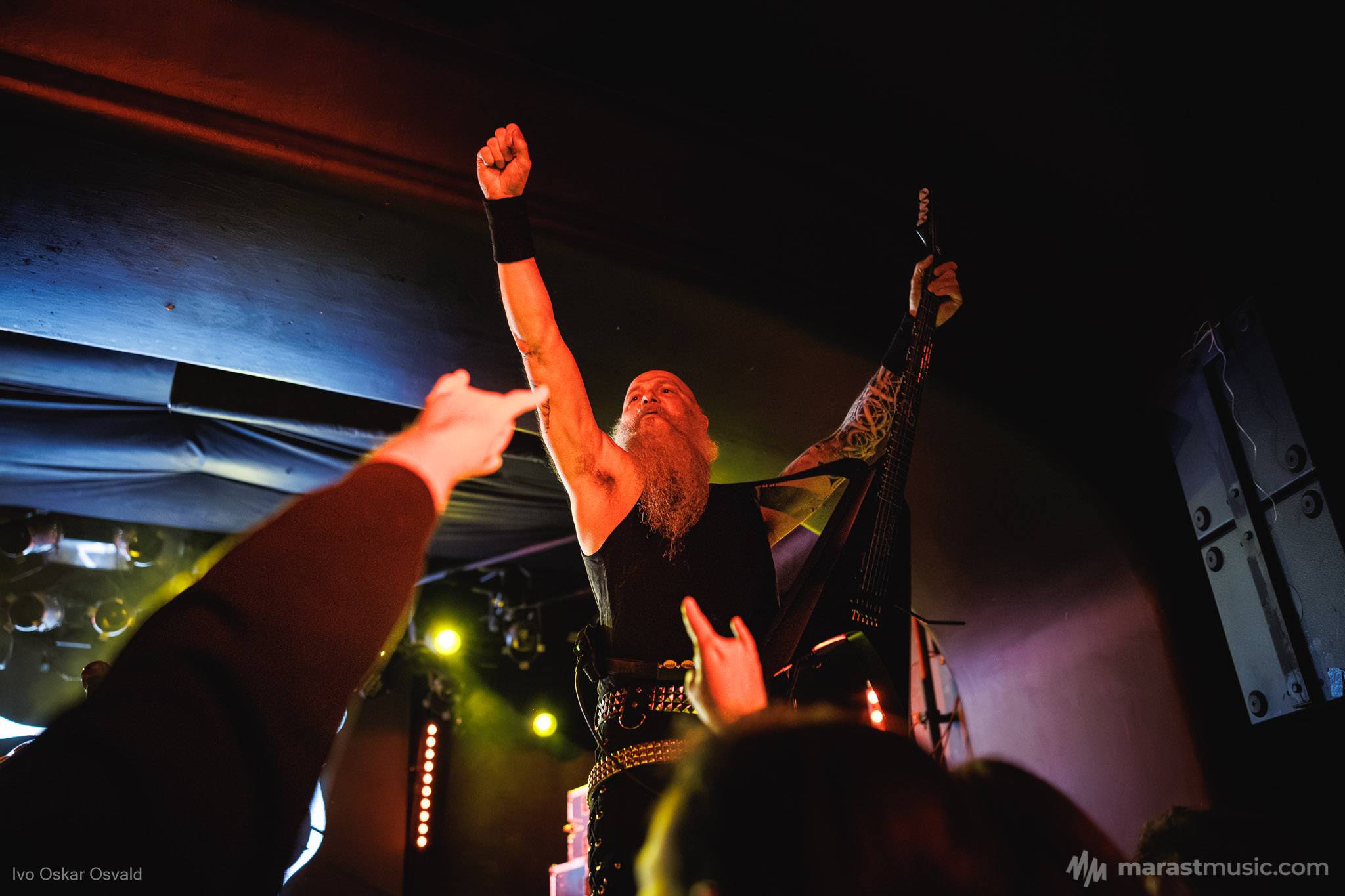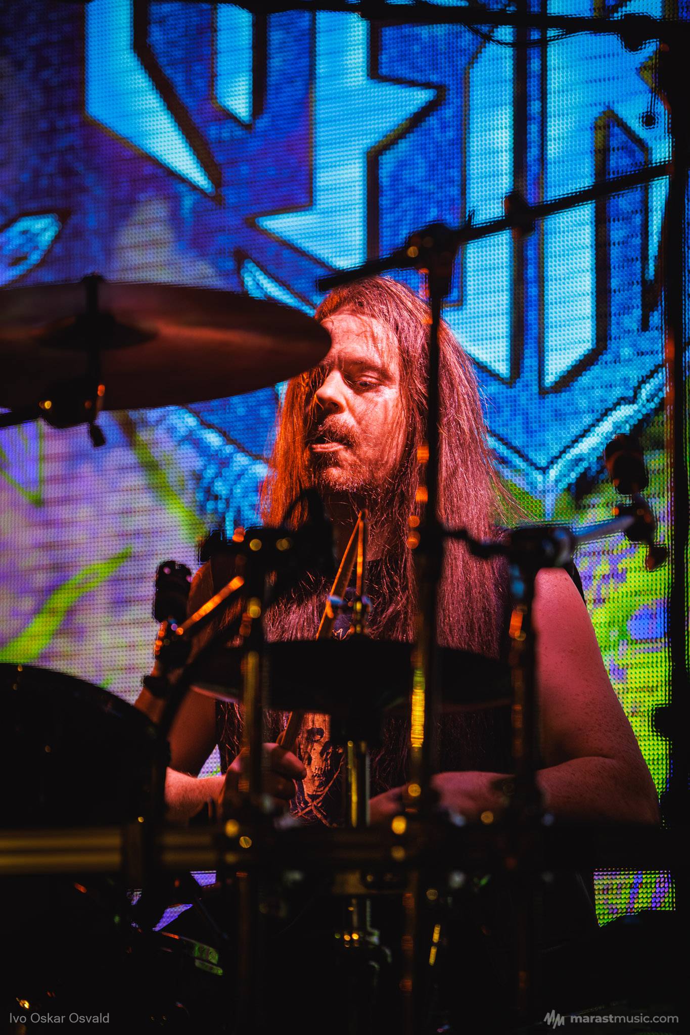 odsypal riadne, oproti albu dost výrazný crashe/chiny, škoda trigger cvakčvachtu, ale vepředu i bas a šlo to, zvuk skvěle čitelnej, mohl trošku víc tlačit, ale ok, Destructhor přísný tremolo i thrash/death drbačky Morbid Angel/Thorns/DhG/Myrkskog/Zyklon i temno zpomalení v Gnavhòl, místy trochu chyběla druhá kytara, v Of Rats and Men rytmická z playbacku + v ní D řval mocnějc než zpěvák, asi zapomněl začátek jednoho sóla a pár drobnejch rozjezdů, ale většina zahraná skvěle, 4 z poslední desky dobrý, ty starší až moc vlezlý melodie, ale fajn