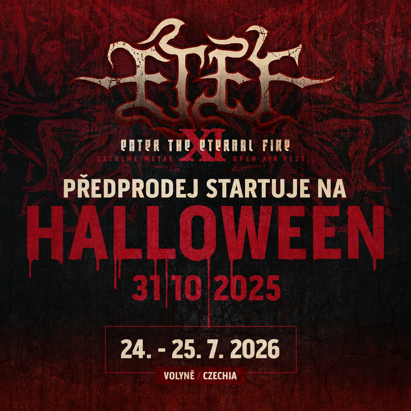 Možná někomu v tomto textu chybí to hlavní – kapely, které zahrají. V tuto chvíli je line-up prakticky složený, ale rozhodli jsme se vsadit na věrnost návštěvníků, kteří důvěřují naší značce a jsou ochotni „risknout“ nákup vstupenek i bez toho, že by věděli, na jaké interprety se mohou příští rok ve Volyni těšit. Můžeme ale slíbit, že se jako vždycky objeví známá i neotřelá jména, že důraz bude opět kladen na mix black, death a thrash metalu a že na rok 2026 chystáme atraktivní rozšíření dramaturgického rozměru akce. Nechte se překvapit, první kapely oznámíme v průběhu listopadu.