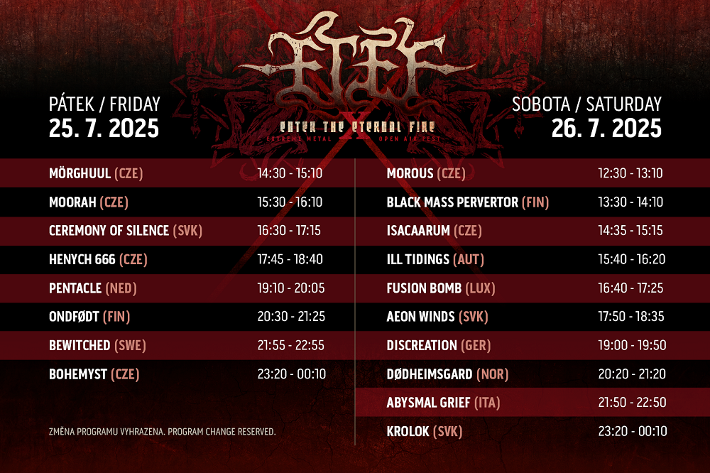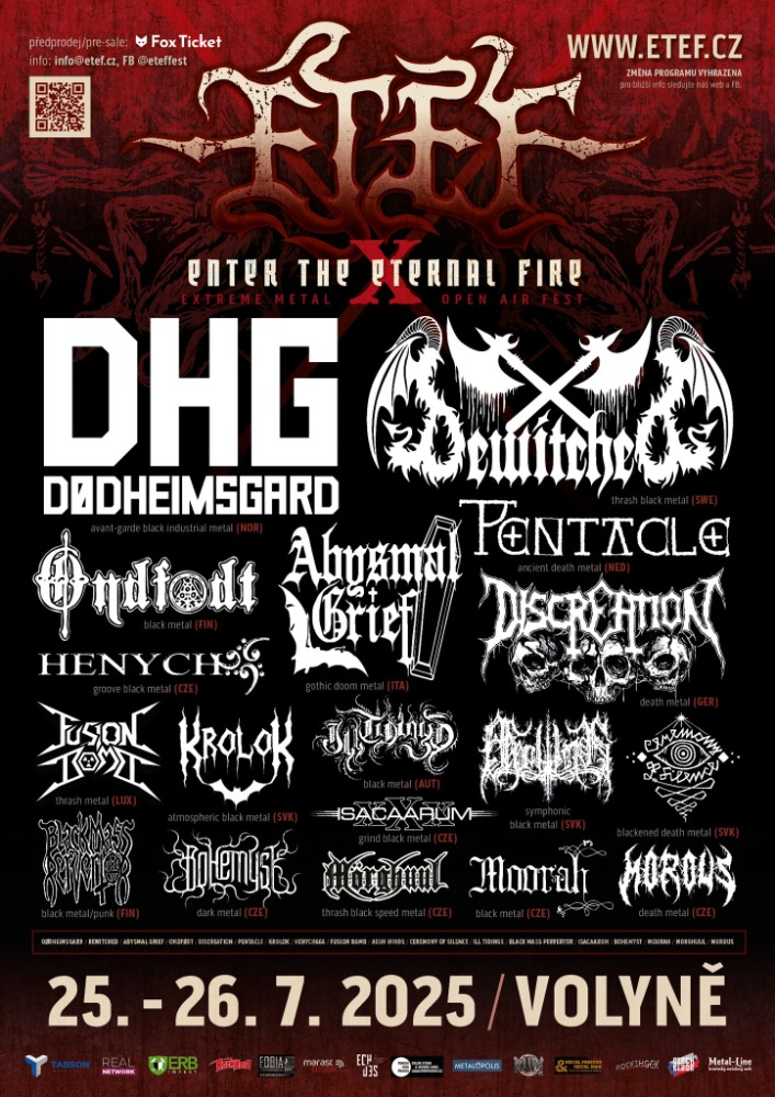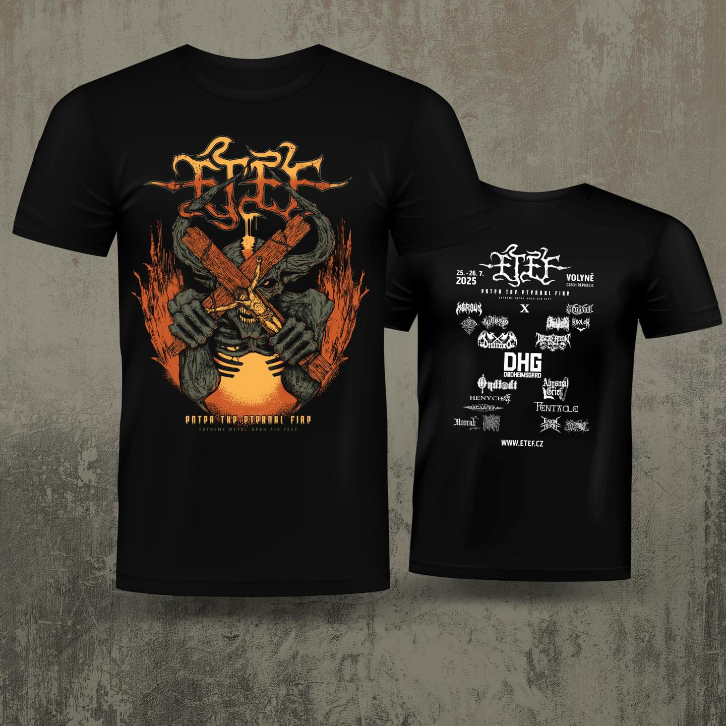 Festivalový textil samozřejmě nebude chybět. K dispozici budou klasická trika s krátkým rukávem, trika s dlouhým rukávem i mikiny za přijatelné ceny. Desátý výroční ETEF si zaslouží symbolický design. Jistě si na motivu najdete římskou desítku „X“. Trika a mikiny budou k dispozici ve festivalovém stánku vedle pódia u nové kryté pergoly.