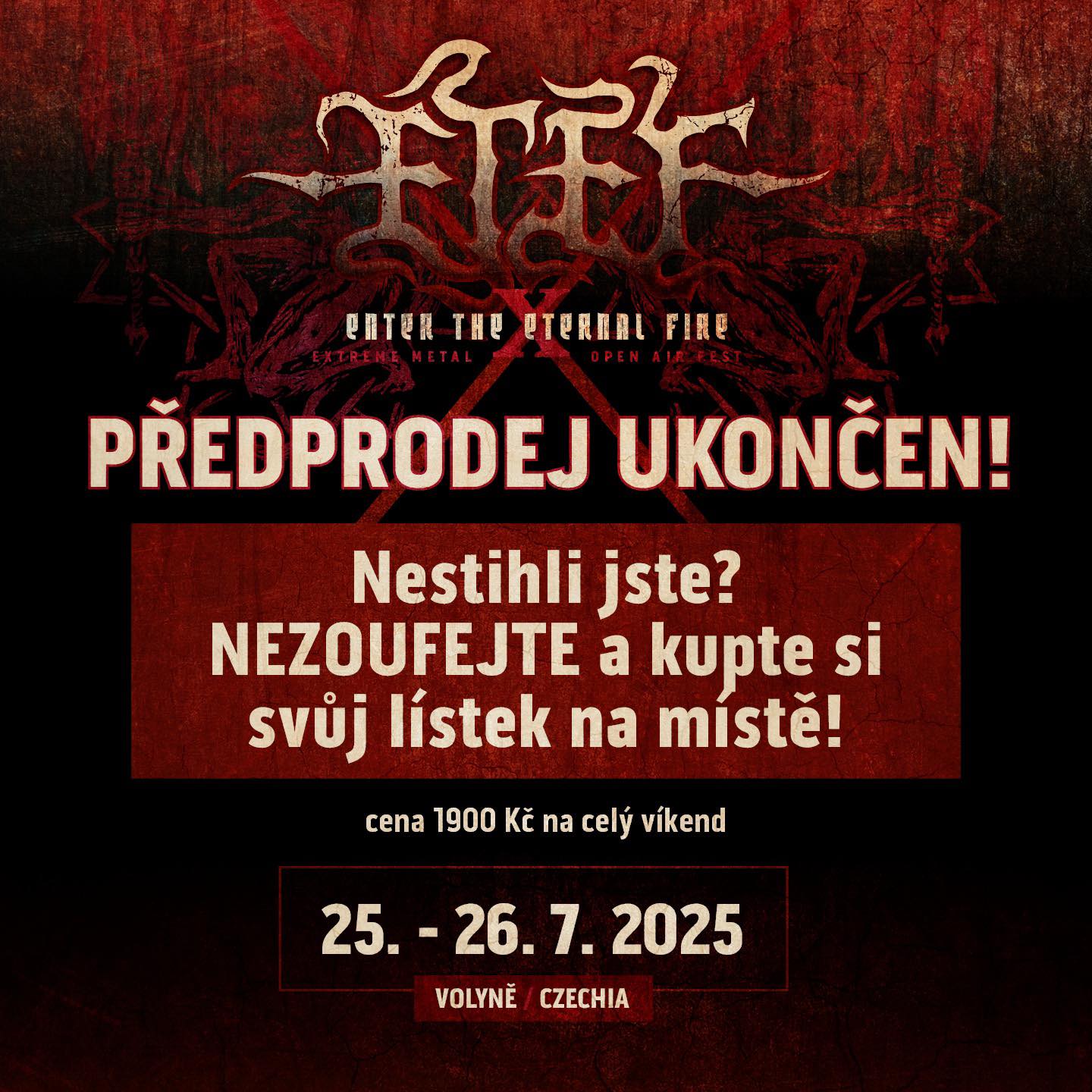Platí stejný čas jako otevření areálu, tzn. v pátek 25. 7. 2025