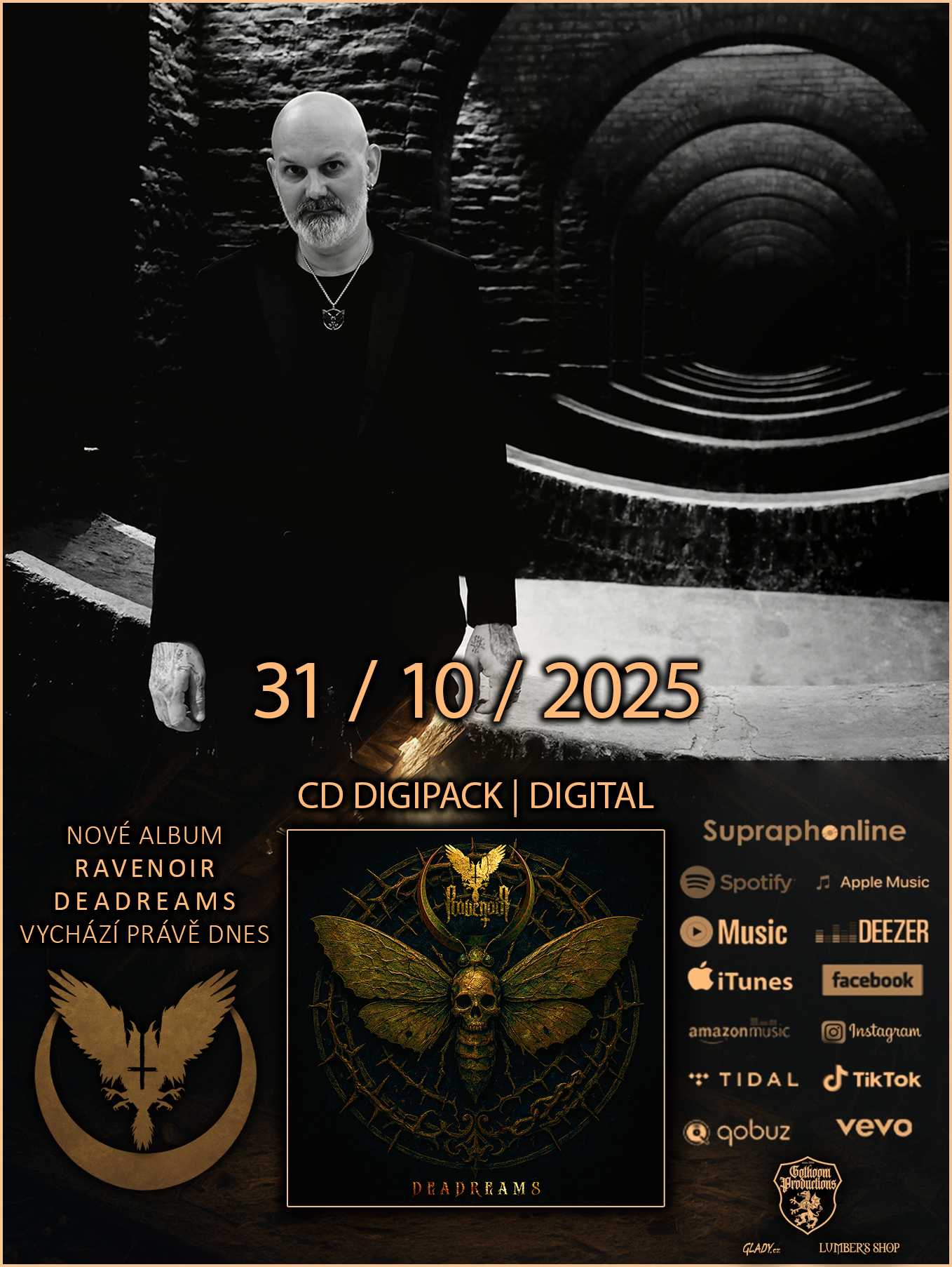Ravenoir, studiový projekt Aleshe A.D. (Root, The Squirm), přichází s pátým albem Deadreams, které symbolicky završuje intenzivní vydavatelskou etapu, protože jde o poslední studiový počin na dobu neurčitou, byť budoucnost Ravenoir se tím rozhodně neuzavírá.